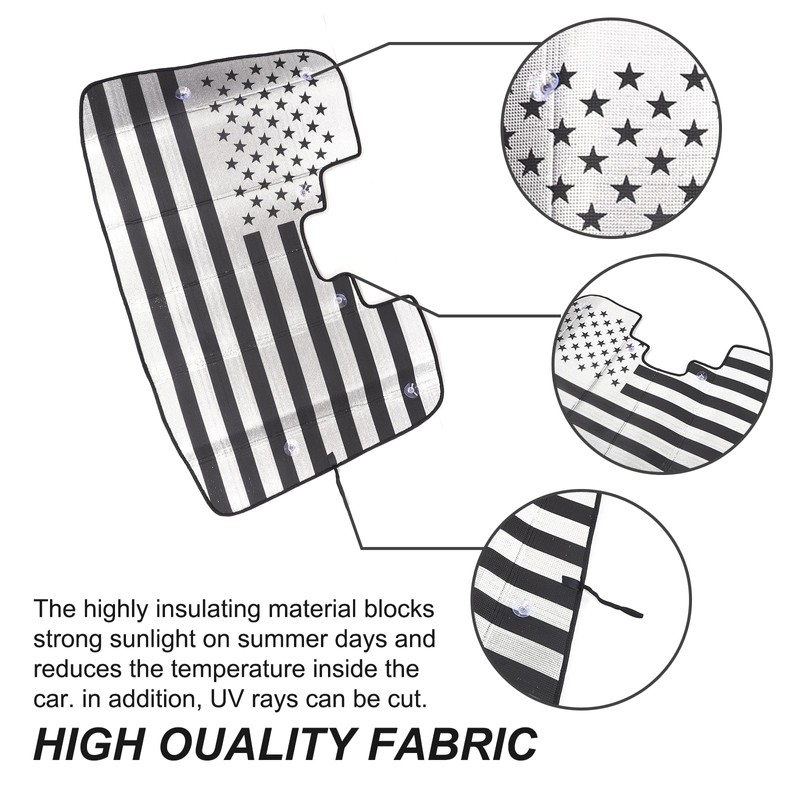 - ☀High Quality Material: The front windshield is made with UV reflective material, two -layer heat insulation and 99% SPF, reducing heat buildup by up to 40°F and blocking of harmful UV rays. Keep your car cooler and prevents leather seats from cracking and fading. This sun visor is essential for sun and UV protection year-round