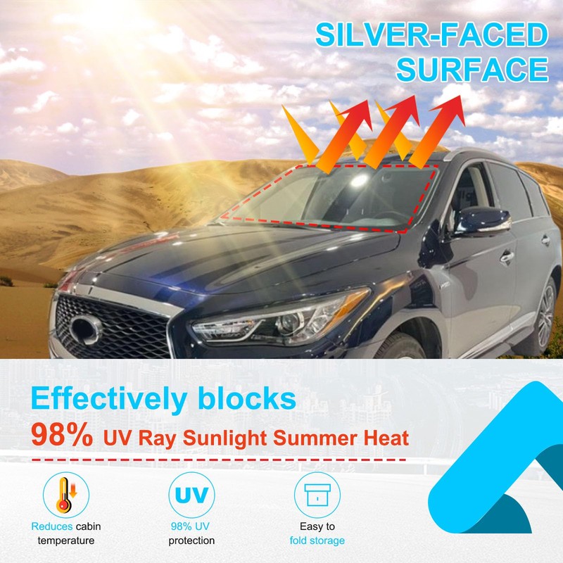 - APPLICABLE MODELS: The Sun Visor is customized with the original car data, The Windshield sun shade suitable for Infiniti QX60 SUV 2016 2017 2018 2019 2020 2021 accessories, Please check compatible models and years before purchasing.
