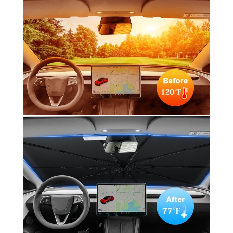 - [Wrinkle-Free & High-Durability] Designed with high-quality materials, this 2025 Envision windshield sunshade umbrella unfolds with minimal wrinkles, always maintaining a neat and aesthetically pleasing appearance. The umbrella frame is made of fiberglass, which has stronger support and durability to ensure longer service life.