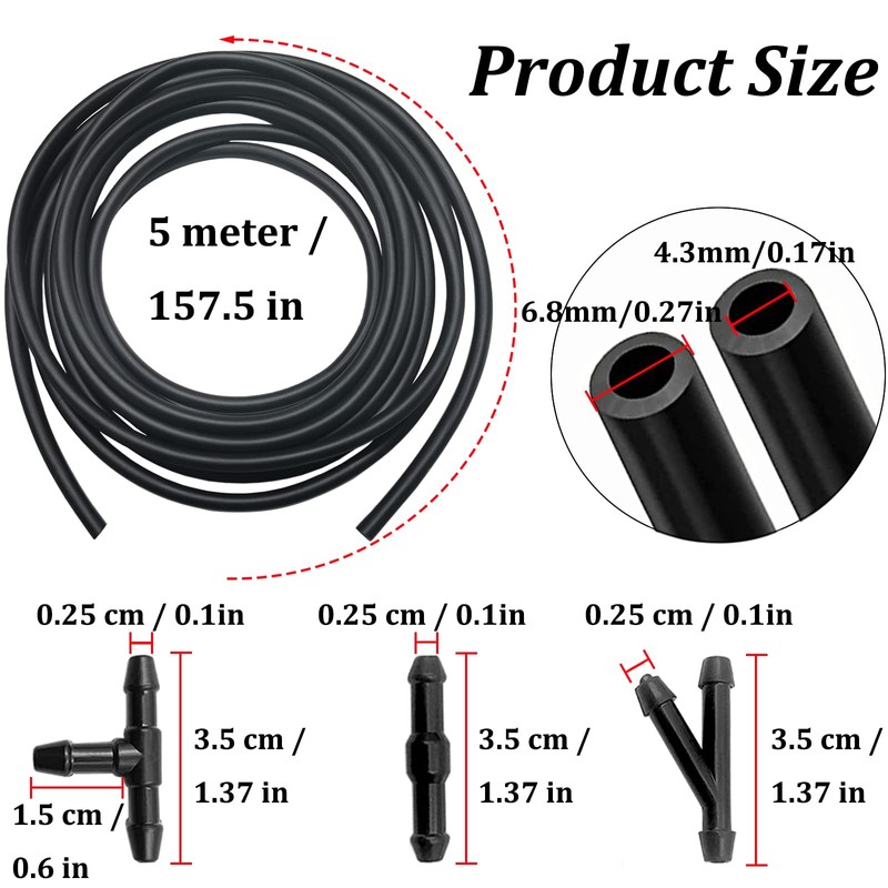 Windshield Washer Hose Kit - Includes 4 Meter Washer Fluid Hose & 12 Pcs Hose Connectors, Compatible with Most Vehicle Windshield Washer Nozzle Installation, for Connecting Car Water Pumps and Nozzles