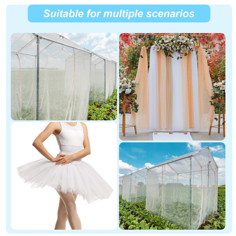 - Wide Applications: tulle fabric is thin and has fine mesh, can be applied for various DIY crafts,suitable for use at a wedding, bridals showers, party.Besides,it can be perfectly applied in garden, yard and farms, nurseries, pastures and orchards