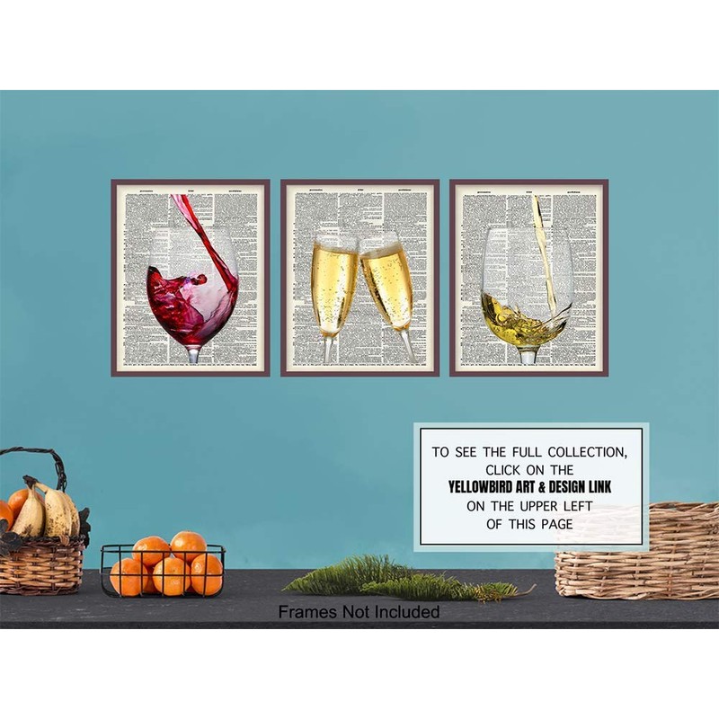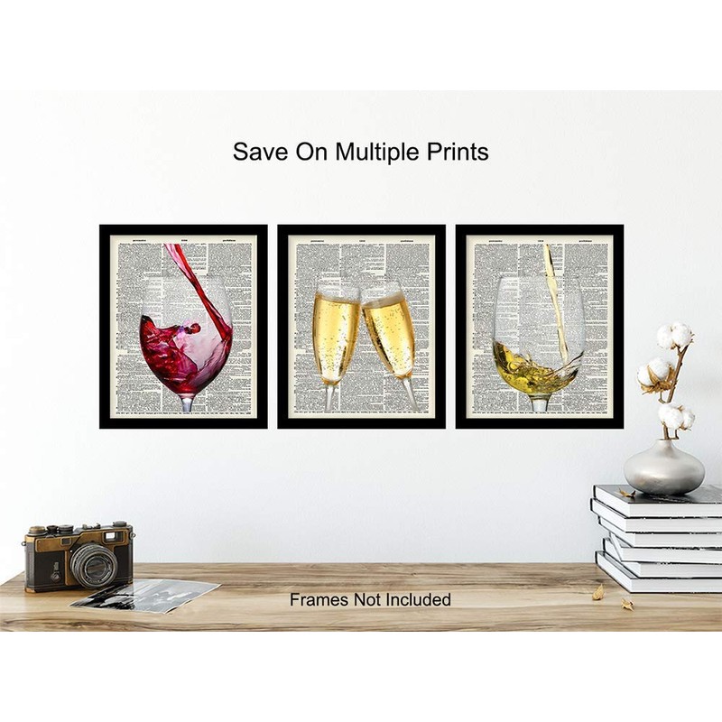 Wine and Champagne Unframed Dictionary Wall Art Prints - Set of Three - Perfect Gift for Game Room, Bar, or Man Cave Decor - Ready to Frame (8x10) Photos