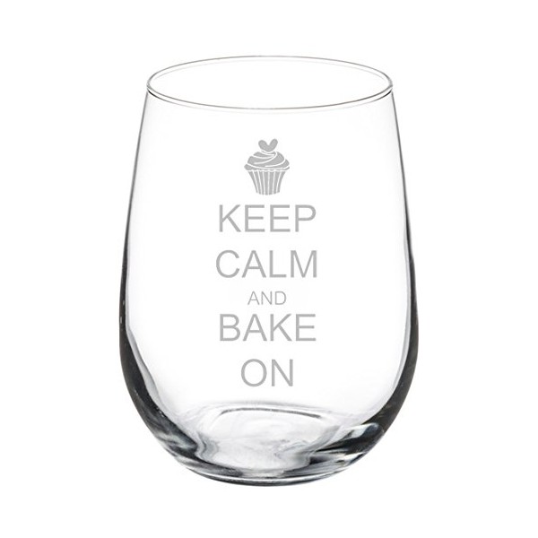 Wine Glass Goblet Keep Calm and Bake On Cupcake (17 oz Stemless)