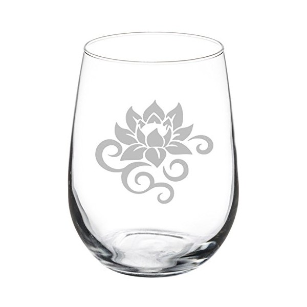 Wine Glass Goblet Lotus Flower Scroll (17 oz Stemless)
