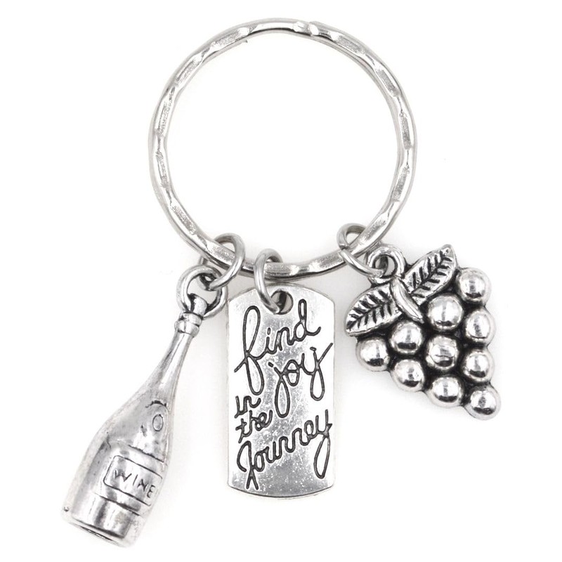 Wine Lovers: Find Joy in the Journey Graduate Retirement Moving Promotion House Parting Congrats Gratitude Gift Red White Merlot Sweet Dry Corkscrew Opener Wine Bottle Grape Bunch Keychain 113D
