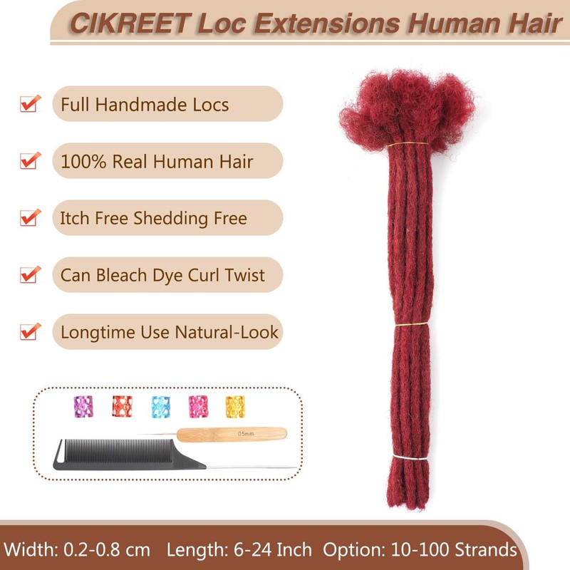 - 【Human Loc Extensions Bundles】CIKREET is Focused on Producing and Selling Real Human Hair Dreadlocks Extensions. 15 Years Factory Direct, 100% Real Human Hair Dreads, 100% Handmade Locs by Professionals. We will Do All Efforts to Provide You a Pleasant Shopping and Using Experience Sincerely.