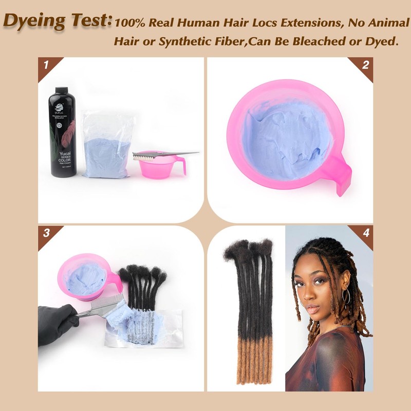 - 【Real Human Hair Locs Extensions】Permanent Loc Extensions Human Hair, Made With High Quality Afro Kinkys Bulk Human Hair. No Synthetic or Animal Hair, Passed Burning and Dyeing Test. Natural Locs Extensions Human Hair Can be Dyed Bleached Washed Curled Twisted Styled as You Like.
