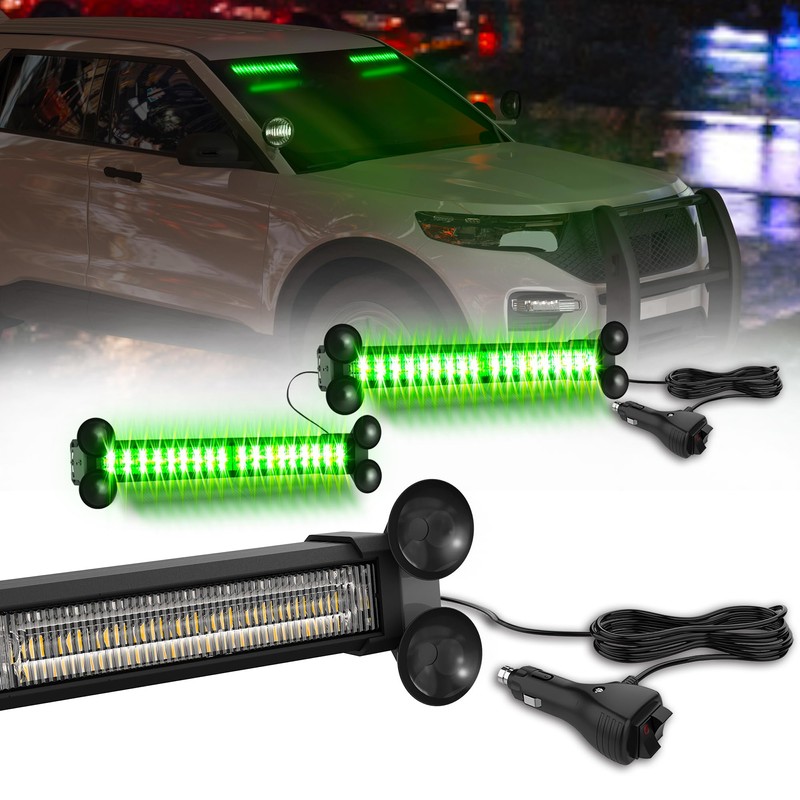 WINECO Emergency LED Strobe Traffic Advisor Lights Bar, Car Windshield Hazard Safety Warning Directional Flashing light w/Suction Cups Split Mount for Vehicle Trucks Volunteer, 2x12inch, Green