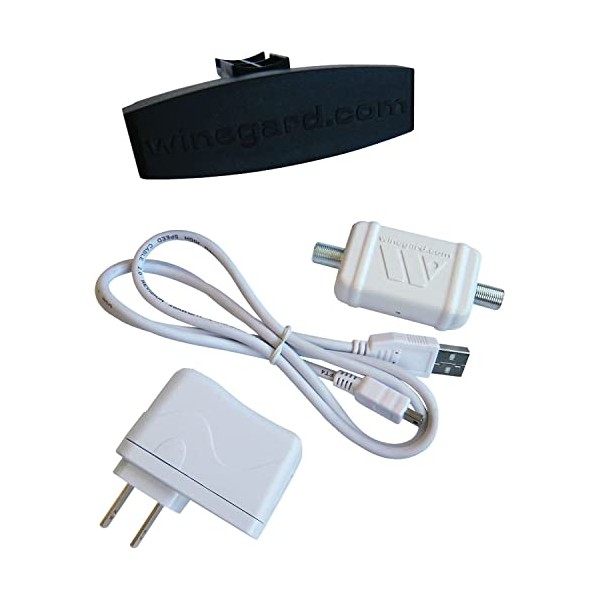 - Includes Winegard Boost LNA-200 digital TV antenna amplifier, 110v adapter, power inserter, hose clamps and printed documentation. Designed and built in the U.S.A.