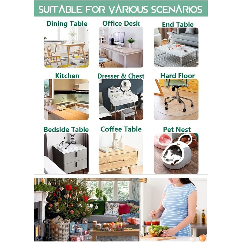 • ☑️【MULTI-SCENE USE TABLE COVER】WingCanto clear vinyl table protector is designed for protecting your wood glass marble stainless steel table top, perfect as console conference table cover, dining room table cover, kitchen table protector, end table runner, office desk chair mat. ATTENTION: We DO NOT recommend to PLACE the clear pad ON a BRAND NEW WOODEN TOP, you can place a fabric tablecloth under the table pad when your wooden top is new or just painted.