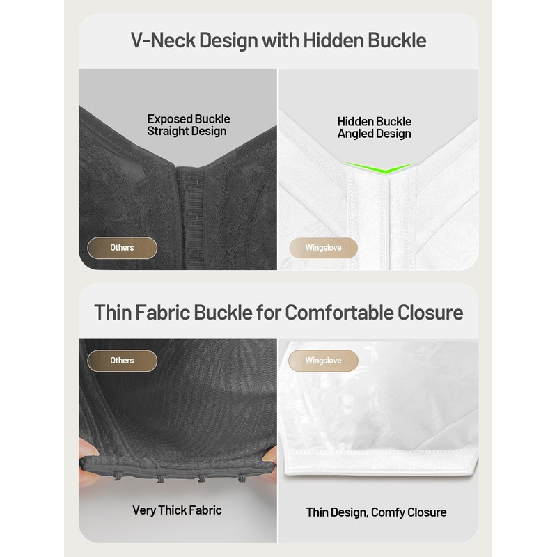 - Front Closure Bra: Stay-flat front closure with extra-large hooks and eyes for easy on-and-off. The hidden design keeps the closure discreet, adding a touch of elegance.
