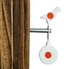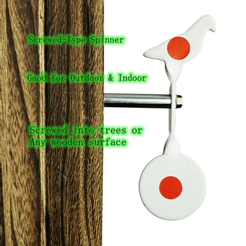 - [EASY TO USE]: just insert the rotating target, circular sleeve, and an iron ring into an outer hexagonal screw, then screwing the entire device into the tree, railing or wood is okay. The target will keep vertical due to gravity,which makes it an air gun resetting targets