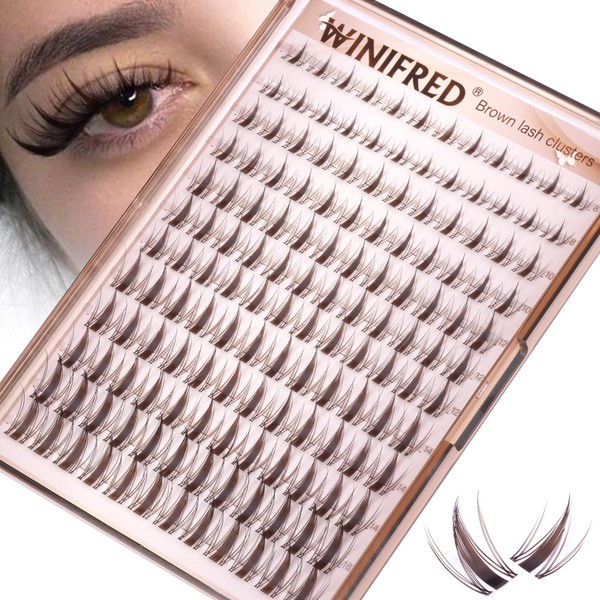 Winifred Brown Lash Clusters Natural Wispy Eyelash Clusters C Curly Manga Cluster Eyelash Extensions Clear Band Fairy Lashes Clusters 8-16mm Dark Brown Individual Lashes