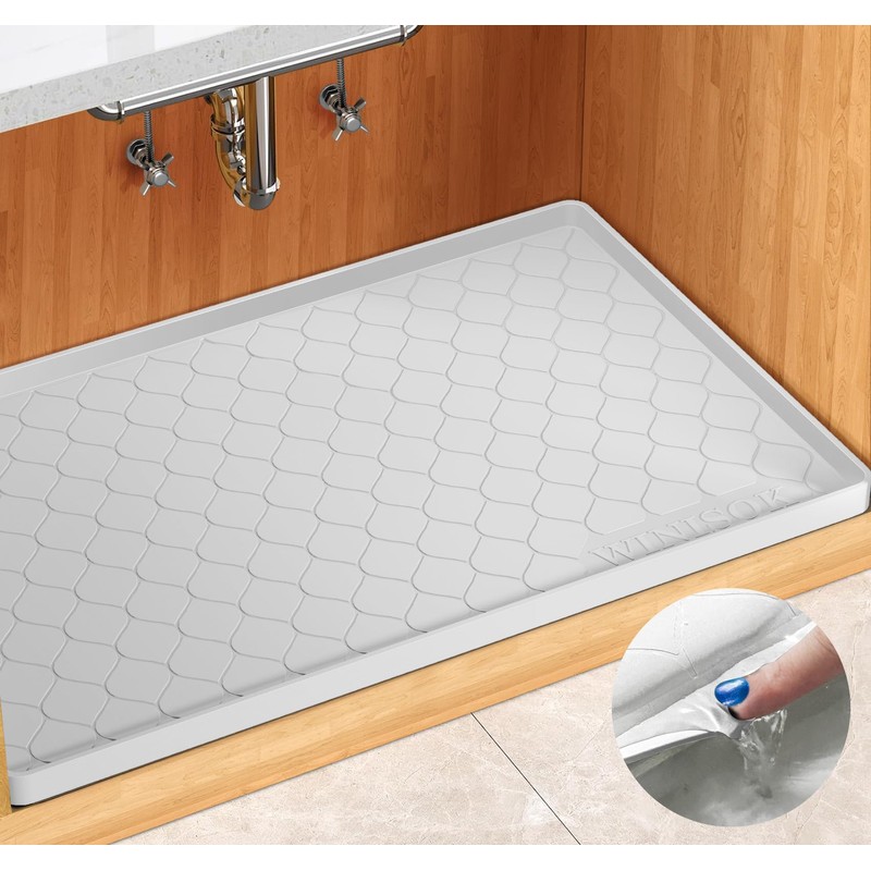 Winisok Silicone Under Sink Mat 25" x 22", kitchen Essentials and Gadgets, Shelf liner and Cabinet Protector, Home Organizers and Storage, Waterproof Bathroom Tray