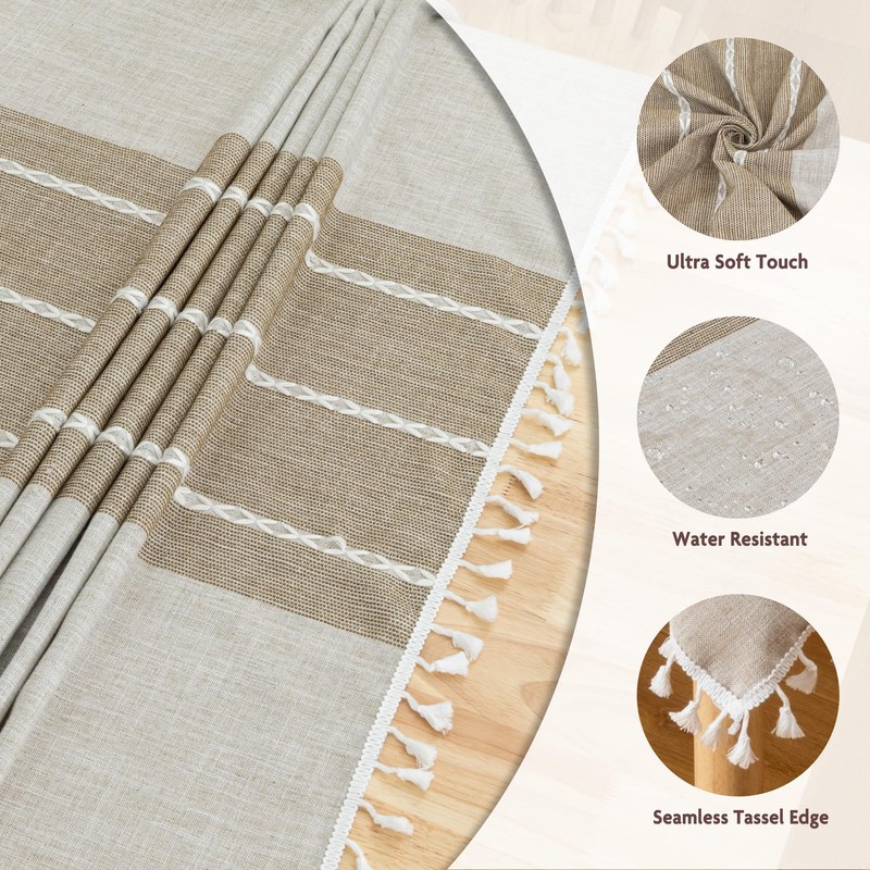 - 【Decors and Design】Tablecloths for table featured rustic farmhouse design, elegant and sophisticated. With delicate embroidery patterns and beautiful fringe tassel gives you a decent elegant feeling, creating a comfortable dining atmosphere.
