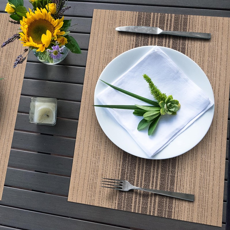 Winknowl Winknowl Placemats, Set of 8 Heat Resistant Stain Resistant Woven Vinyl Insulation Place mats, Durable Washable Elegant Table Mats for Dining (Brown)