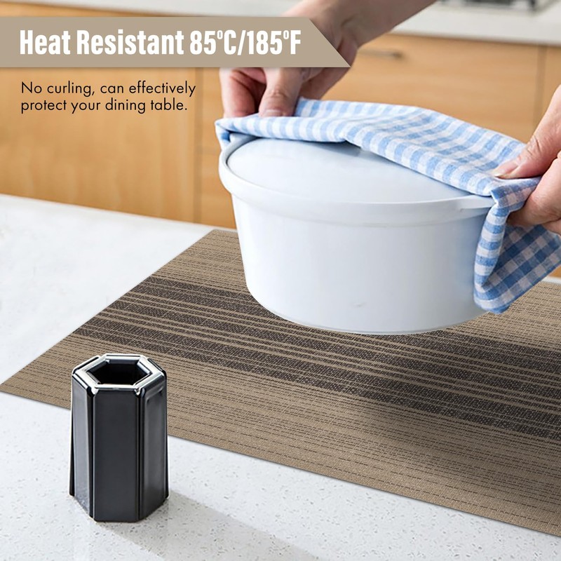- High Material QualityPlacemats woven with high quality eco-friendly PVC materials. Effective heat resistance of approximately 185F(85)