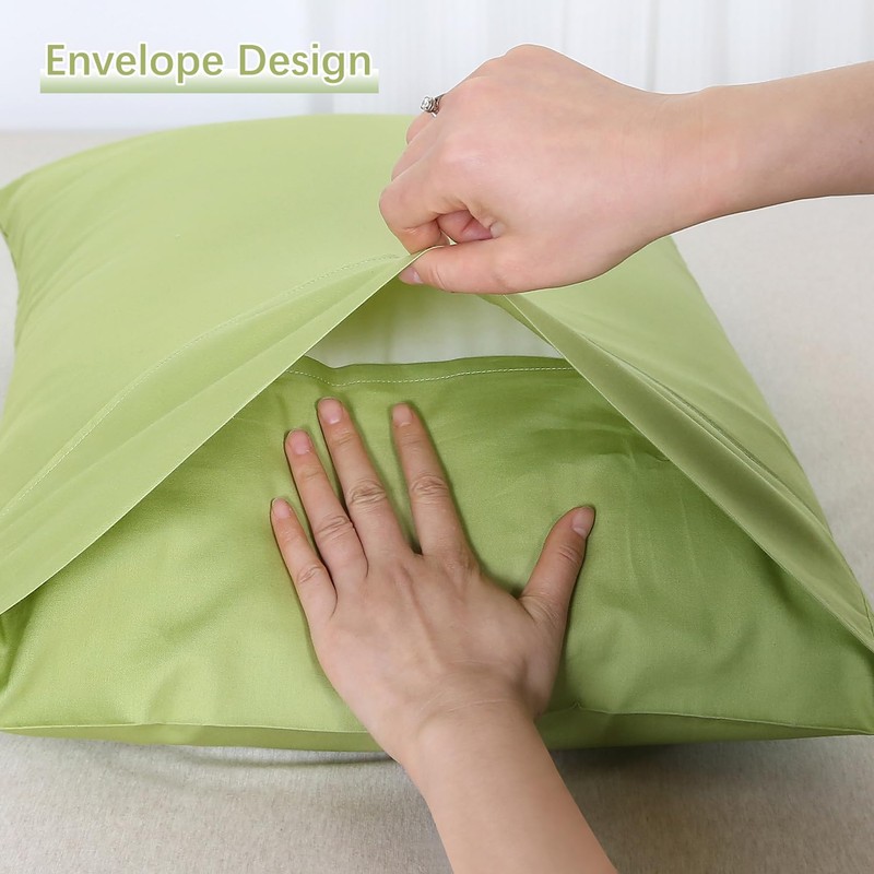 WINLIFE Standard Size Pillowcases Set of 2, 100% Cotton Standard Pillow Cases, 20×36 inches, Soft and Breathable Pillow Case Envelope, Sage Green