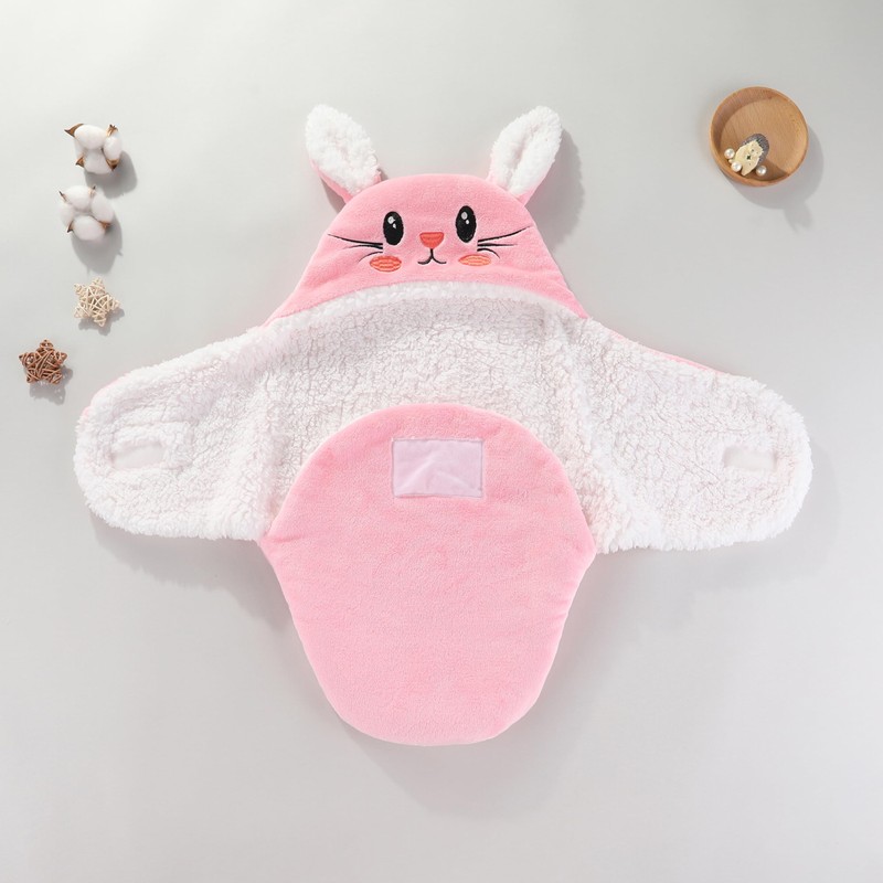 - Various Cute Cartoon and Two Size Optional :Our newborn plush hooded bear swaddle blanket are designed for babies 0-6 months old, available in 2 sizes (0-3Months, 3-6Months) and 4 cute cartoon colors to choose (Pink Rabbit, Blue Bear, Grey Elephant,White Panada). The cartoon design will let your baby looks so cute and adorable,and let your little one will enjoy the benefits of swaddling even as they continue to grow.