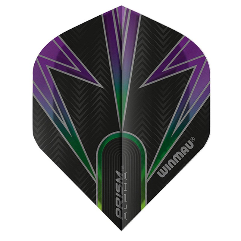 Winmau Prism Alpha Black & Purple Extra Thick; 1 set per pack (3 flights in total); Standard shape dart flights; Extra Thick quality flights; 100 micron thickness