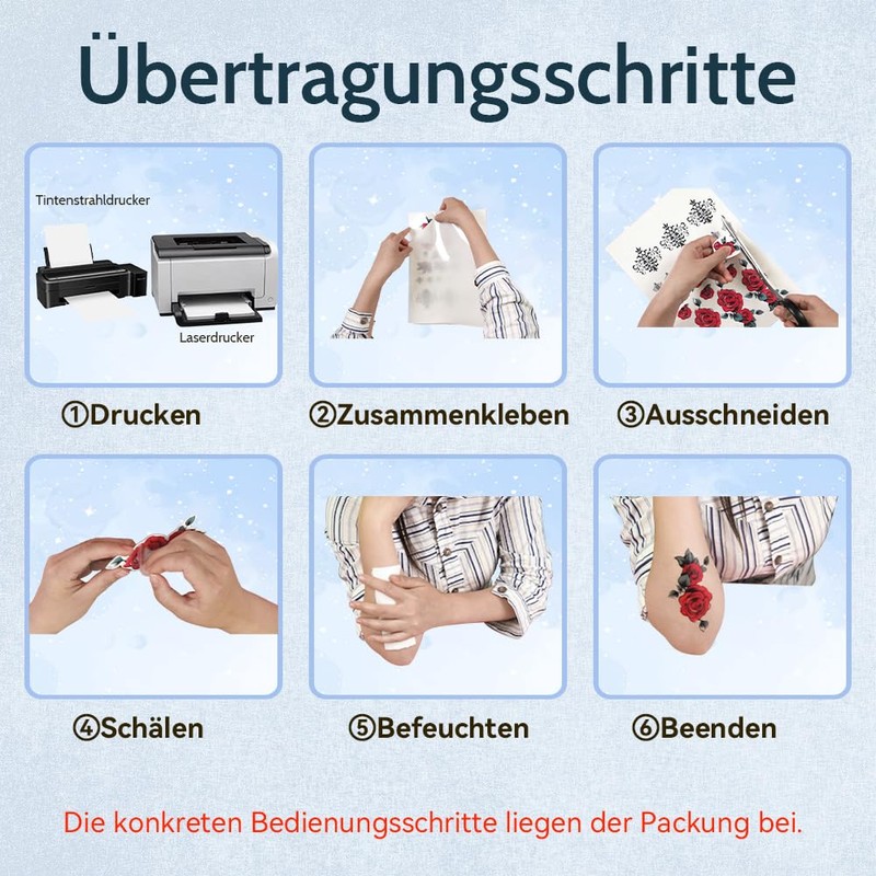 WinnerTransfer A4 x 5 Sets, Inkjet/Laser Tattoo Paper, DIY Tattoo Film for Printing, Temporary Transfer, Decal Paper for Inkjet Printer/Laser Printer, Tattoo Transfer Film (WT-11-Matt-5)