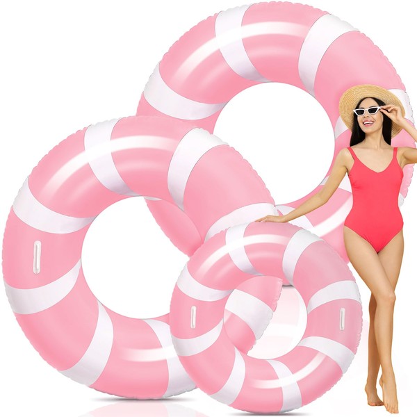 - Jumbo Swimming Ring with Handle: you will get 2 pieces of jumbo inflatable pool floats with handles with pink stripe pattern; Each inflated swim ring diameter is approximately 47.24 inches/ 120 cm, suitable for adults weighing up to 440 lbs/ 200 kg; Sufficient quantity and exquisite styles to meet your various uses, ideal for your summer vacation and summer theme parties, enjoy summer fun in the sun and water