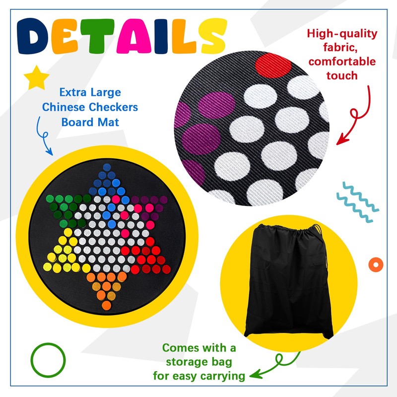 - Large Gameplay Mat: embrace the traditional board gaming experience with our large Chinese checkers board game; This set includes a large 26 x 26 inch checkerboard mat, and 60 pieces in 6 colors, the multicolored design enhances the gaming experience