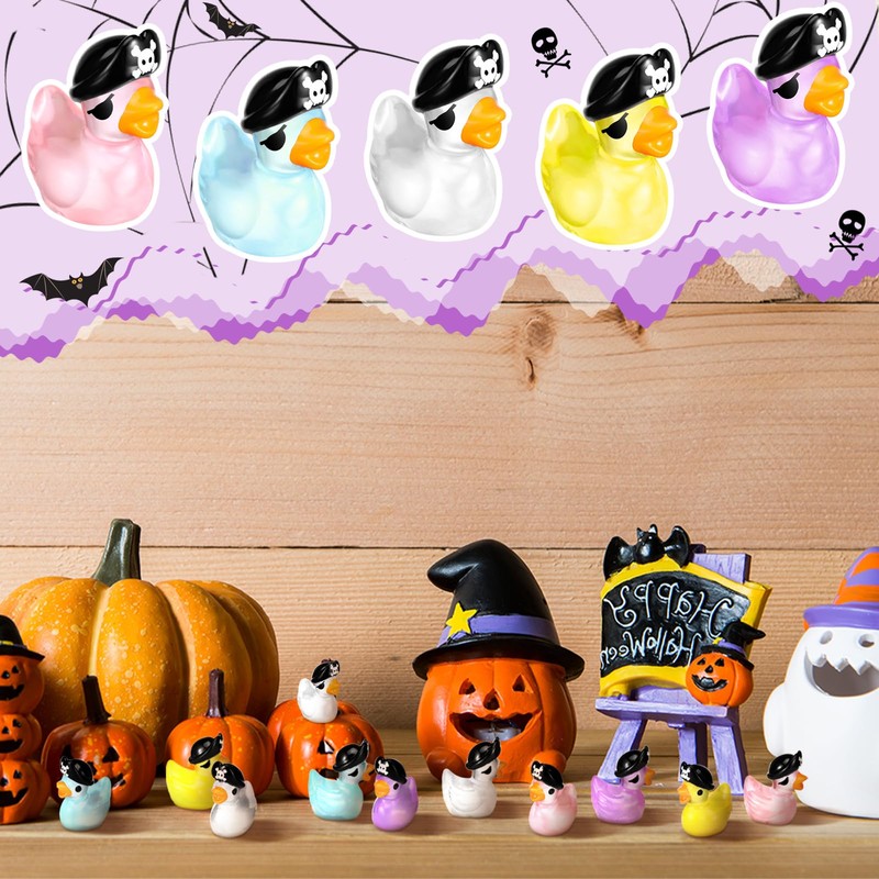 Features:Brilliantly vibrant color:Our set of Tiny Ducks, colored in an enchantingly bright shade of yellow, blue, pink, white and purple, offers a striking festive appeal. Spark joy and infuse your surroundings with a splash of fun this Halloween with these radiant, sultry color miniature figures.Amply packed for generous decor:Our package includes a generous amount of 100 pieces of these cute Halloween mini resin ducks. You can choose your decorations the way you like it. Strategically placed around the house, these ducks can make a considerable difference in upping your Halloween decor.Specifications:Material: resinMain color: yellow, blue, pink, white and purpleSize: 0.83 x 0.65 x 0.46 inchesPackage includes:100 x Pirate mini resin ducksNotes:Manual measurement, please allow slight errors on size.The color may exist a slight difference due to different screen displays.Suitable for people over 6 years old, and it's recommended to use under the supervision of adults in case of choking risk.