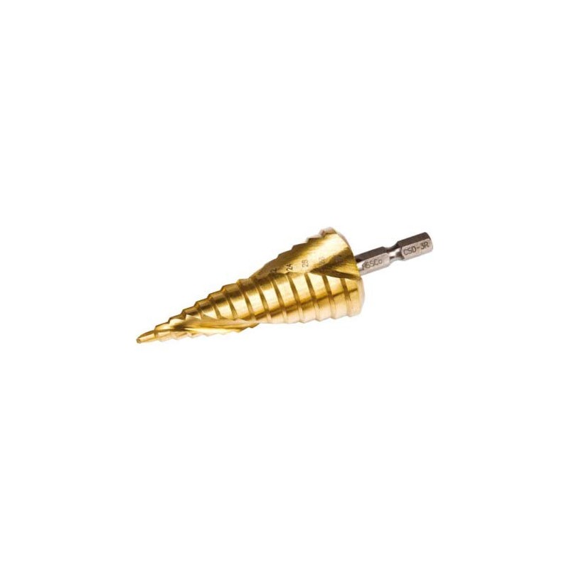 - Manufacturer Name: Sukageu Tool Co., Ltd. / [Features] / Spiral groove improves sharpness. / Unique cutting blade construction for outstanding performance. / · You can drill holes with different diameters. / No rashes and precise drilling. Can be used for a variety of purposes, such as deburring, punching holes, and chamfering. / Center punch work is not required. Uses: Iron 0.08 inch (2 mm) or less, stainless steel 0.06 inch (1.6 mm) or less, aluminum, copper, plywood, plastic, etc. Electrical and electrical construction. /·Automotive Repair, Sheet Metal / Hobby, DIY, etc. Specifications: / Product Name: Winning Boa Cobalt Step Drill 0.2 - 1.2 inches (4 - 30 mm) Titanium Coating; Model Number: CSD-3TR; Step Width: 0.2 inches (5.5 mm); Number of Tiers: 0.2 inches (14 mm); Shank Diameter: 0.2 inches (6.35 mm); Total Length: 3.9 inches (12 mm); Surface Treatment: 0.6 inches (14 mm). , 22, 2 4, 26, 28, 30 / [Materials/ Finish] / Cobalt High / [Set Contents/Accessories]