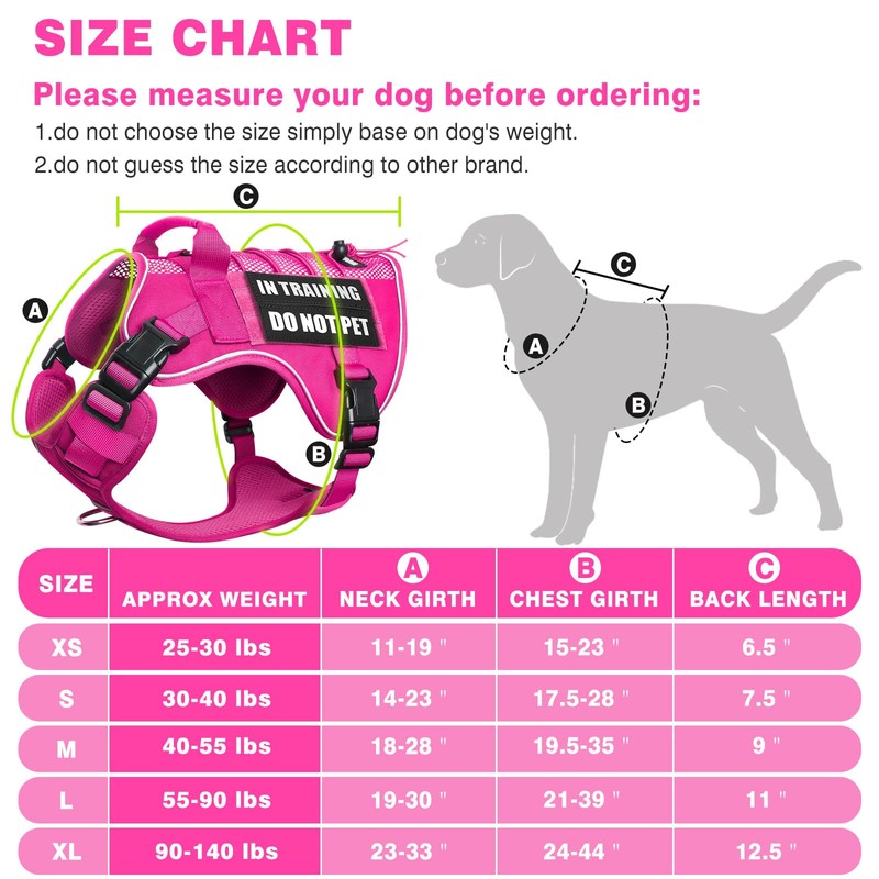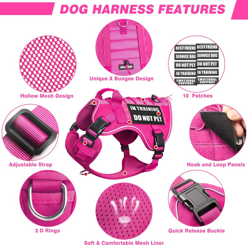 - 【Mesh Design Harness with 10 Dog Patches】: This tactical dog harness with Soft breathable mesh helps dog to have extra airflow, quick to dry for all seasons. Aire mesh harness have a good fit and extra stability. The package contains a WINSEE dog vest harness and 5x2 pieces of dog patches with sewed letters, such as “Service dog”, “do not pet”, “in training”, “emotional support” and “Service dog in training”, enough quantity for you to decorate the dog’s vest harness.
