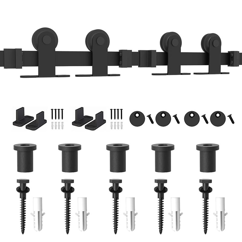 WINSOON 6.6FT WinSoon Antique Top Mount Double Sliding Barn Wood Door Hardware Cabinet Kit Black