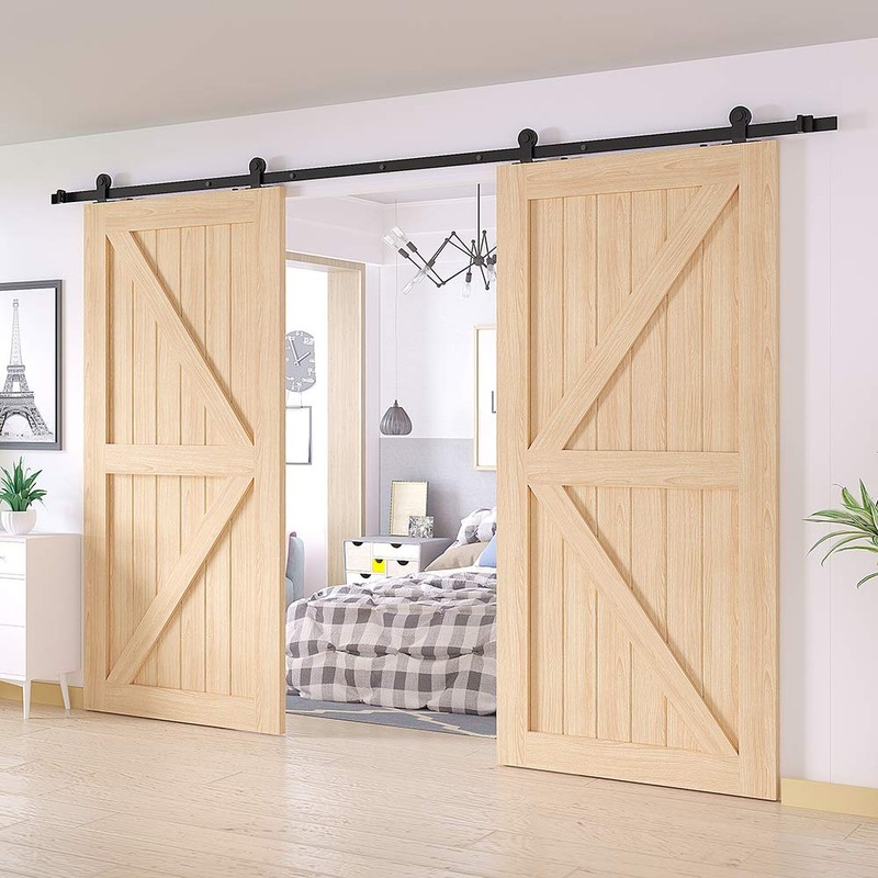 WINSOON 6.6FT WinSoon Antique Top Mount Double Sliding Barn Wood Door Hardwar...