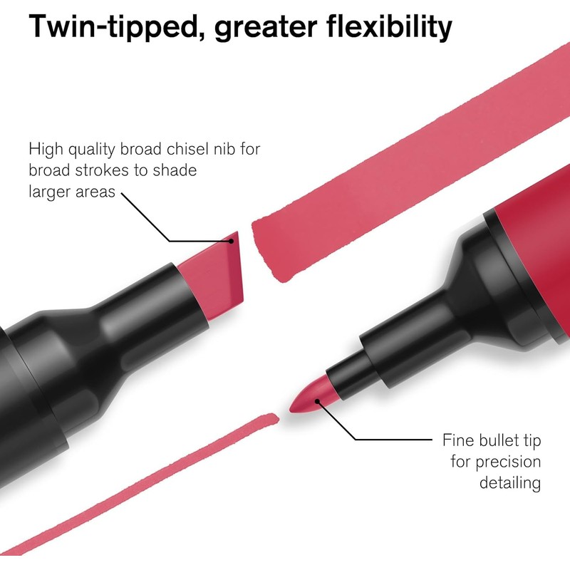 - 2 TIPS - Twin markers with a fine and a wide tip for sophisticated drawings, the fine tip is ideal for precise details and lines. The wide chisel tip is ideal for coarser drawings and large areas