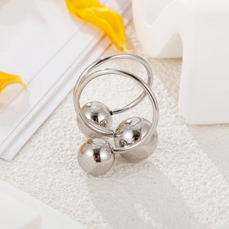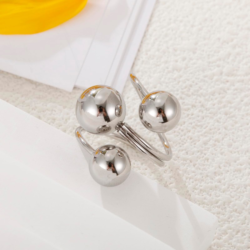 Winssigma Adjustable Chunky Rings for Women, Bold Thick Rings Statement Rings Three Balls Ring Minimalist Simple Rings(Silver Ball)