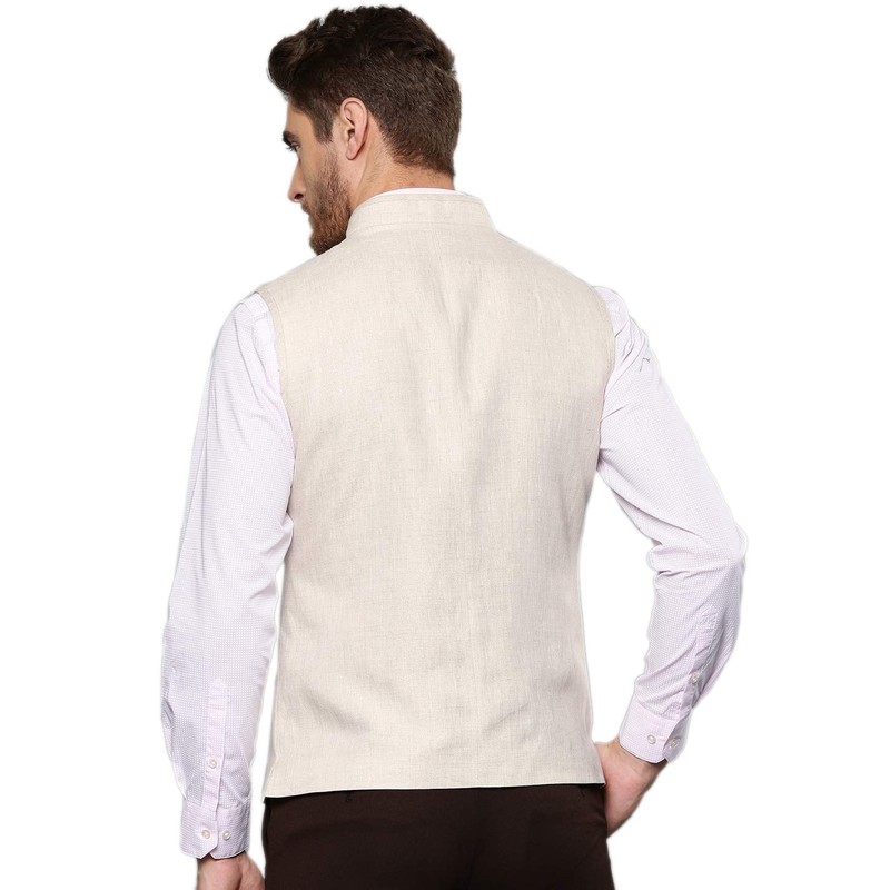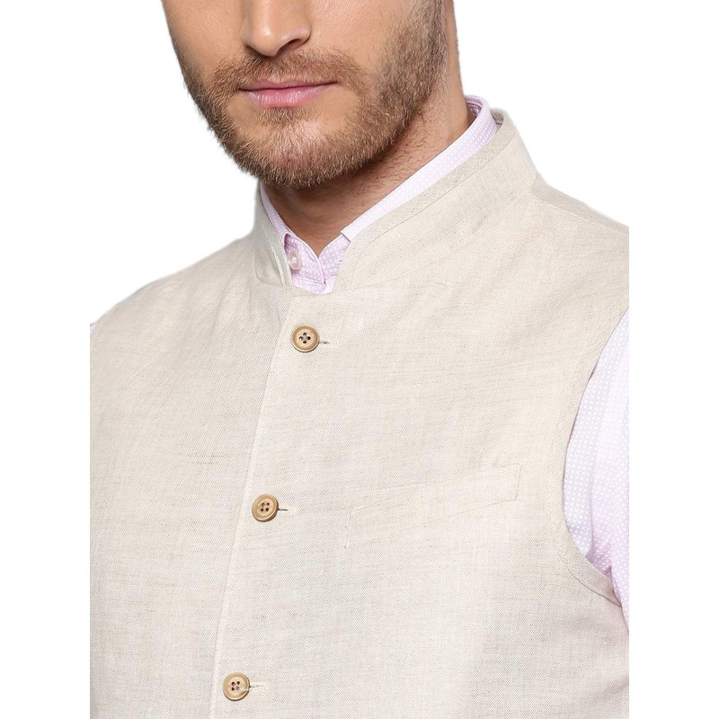 WINTAGE Men's 100% Linen Festive and Casual Nehru Jacket Vest Waistcoat : Beige