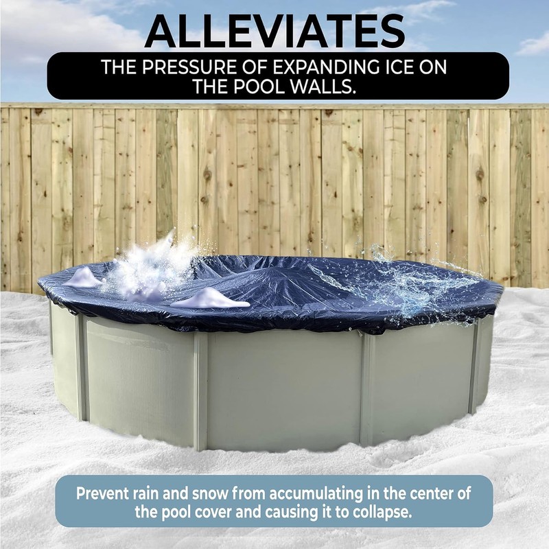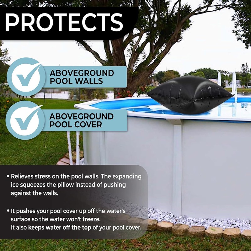 - PROTECTS ABOVE-GROUND POOL COVER: The pillow pushes your pool cover up off the water's surface so the water won't freeze to your pool cover. It also keeps water off the top of your pool cover