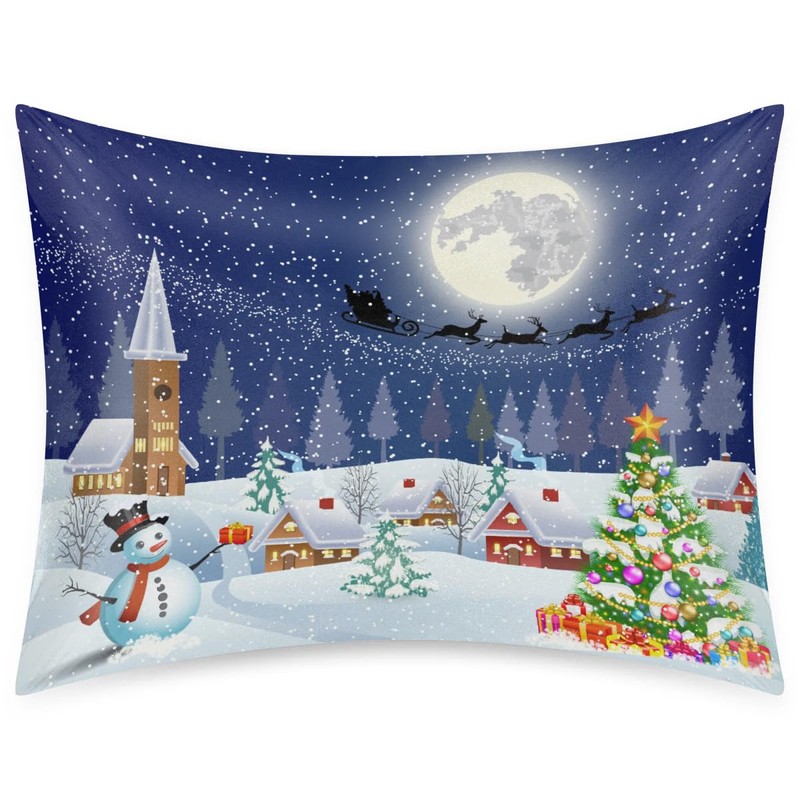 Winter Christmas Tree Satin Pillowcase for Hair and Skin,Snowman Santa Claus Smooth Silk Pillow Covers for Sleeping Breathable Satin Pillow Case with Zipper (20x26inch, Standard Size)