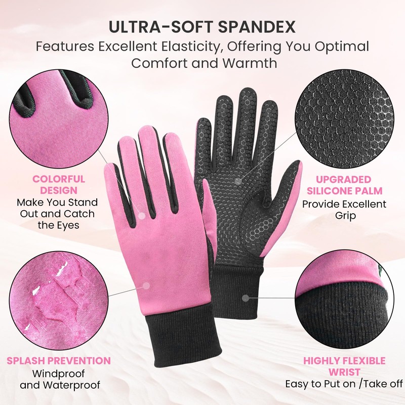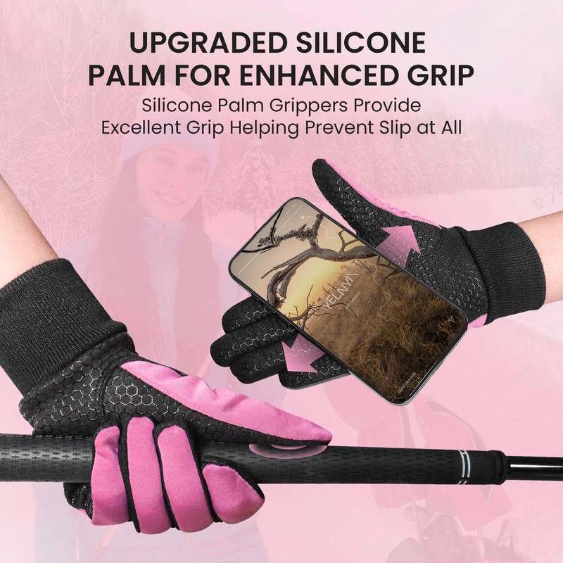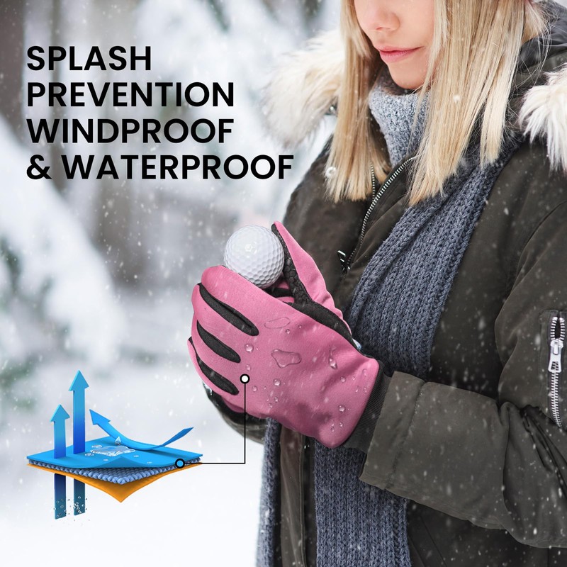 Winter Golf Gloves Women Value 1 Pair Left Hand Right with Warm Grip Performance, Cold Weather Windproof Size Small Medium Large (Pink, Medium)