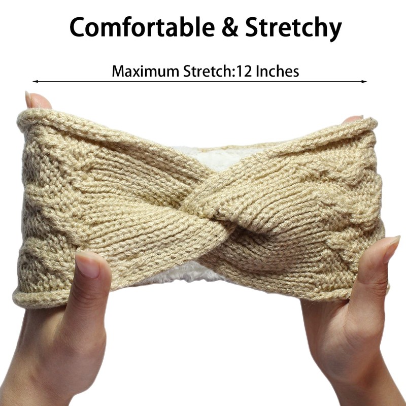 - One size for most: the handmade knitted ear warmer headband comes with 1 pack of beige ear headbands for girls. Measure approximately 12 long x 22 cm wide (4.7 x 8.7 inches). Women's beige headband is suitable for all women, girls and even men. Keep away from the cold on these stormy cold winter days.