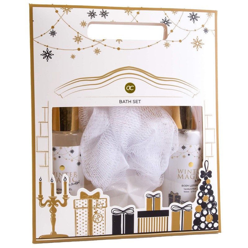 Winter Magic Bath Set Shower Gel Body Lotion Bath Stone Mesh Sponge Vanilla Musk