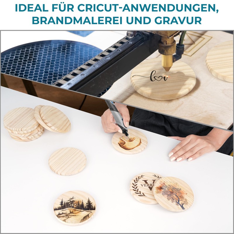 - Set of 12 wooden glass coasters – with this pack of 12 you will receive enough round wooden discs for crafting and decorating; perfect for entertaining guests, as a housewarming gift and for other occasions