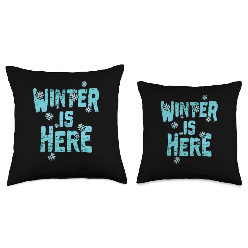 Winter snow cold ice frost Season winter sports Winter is here and it is Snowing Throw Pillow, 16x16, Multicolor