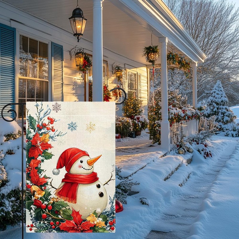 - Garden Decoration: Snowman snowflake Christmas garden flag is perfect for any patio, yard, lawn, porch or balcony vicinity, and adds a charming decoration to any front yard, backyard or garden, perfect for adding a joyful atmosphere to any outdoor space.