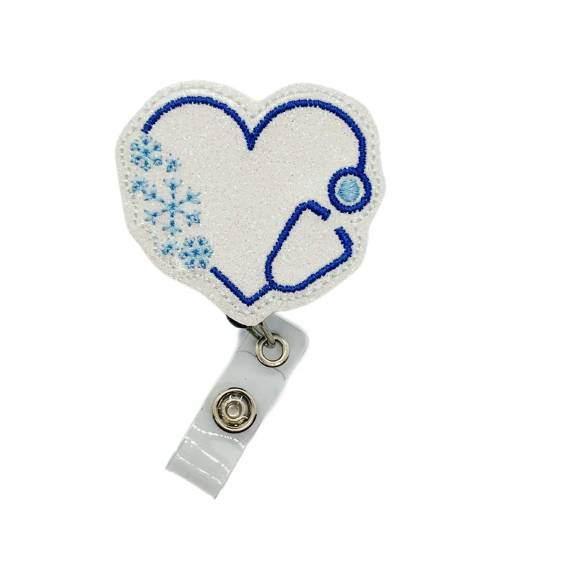 Winter Stethoscope Badge Reel, Retractable Snowflake ID Holder, Nurse Name Tag Clip (belt clip)