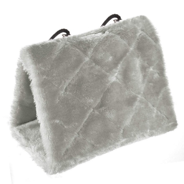 Winter Warm Bird Nest House Shed Hut Hanging Hammock Finch Cage Plush Fluffy Birds Hut Hideaway for Hamster Parrot Macaw Budgies Eclectus Parakeet Cockatiels Cockatoo Lovebird (L, Grey)