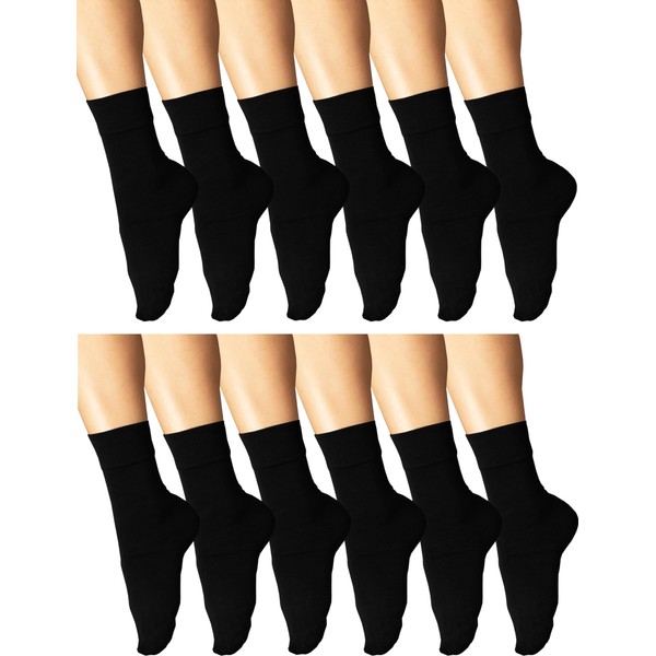 Winterlace Womens Soft Bamboo Rayon Viscose Dress Socks, 6 Pairs Trouser Socks Premium Thin Crew Socks Bulk Pack (Black (12-Pairs))