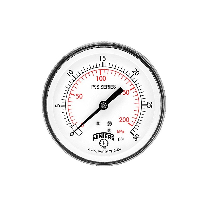 Winters P9S 90 Series Steel Pressure Gauge with Removable Lens, 0-30 psi/kpa,...