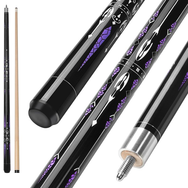 - 🎱【Specifications】 58-inch length (147 cm) & 21oz weight (595g) for optimal balance and control. Durable 13mm leather tip delivers precise cue ball contact. Easy-assembly 2-piece design screws together securely; feels seamless like a one-piece cue.
