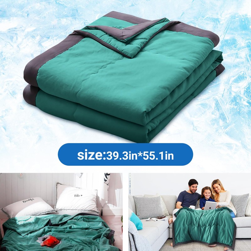 • ❄️💤 【𝐋𝐢𝐠𝐡𝐭𝐰𝐞𝐢𝐠𝐡𝐭 𝐚𝐧𝐝 𝐌𝐮𝐥𝐭𝐢𝐟𝐮𝐧𝐜𝐭𝐢𝐨𝐧𝐚𝐥】The cool blanket measures 140x100cm and is lightweight and easy to carry. The cool blanket for summer provides a comfortable sleep on the sofa in the bedroom, on a summer evening, in the garden, perfect for camping and hiking. On hot summer days, this summer cooling blanket can be used with a cooling mat or fan.