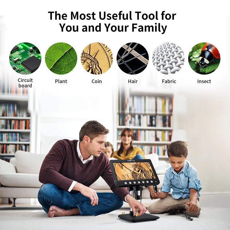 • 【50-1200X Digital Magnification】The electronic microscope stands out from other microscopes with its remarkable 50-1200X zoom range, empowering adults and children to delve into a variety of applications such as PCB soldering, coin examination, skin and hair strands detection and observing tiny insects and plants outdoors.